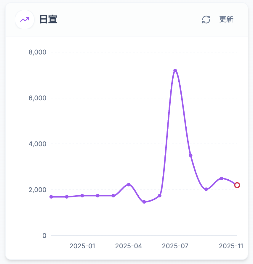 以下は「日宣」の例ですが、7月に株価とともに急上昇した注目度ですが、8月に株価の下落とともに注目度の落ちていきます。8月はまだ注目度が以前の水準と比べても戻っていないことが分かりますよね?こういったときは手は出さず、9月以降の落ち着いたタイミングで触るようにしましょう。実際8月は株価も落ちており、ここで買いポジションでいると落ちるナイフを掴むことになってしまいます。