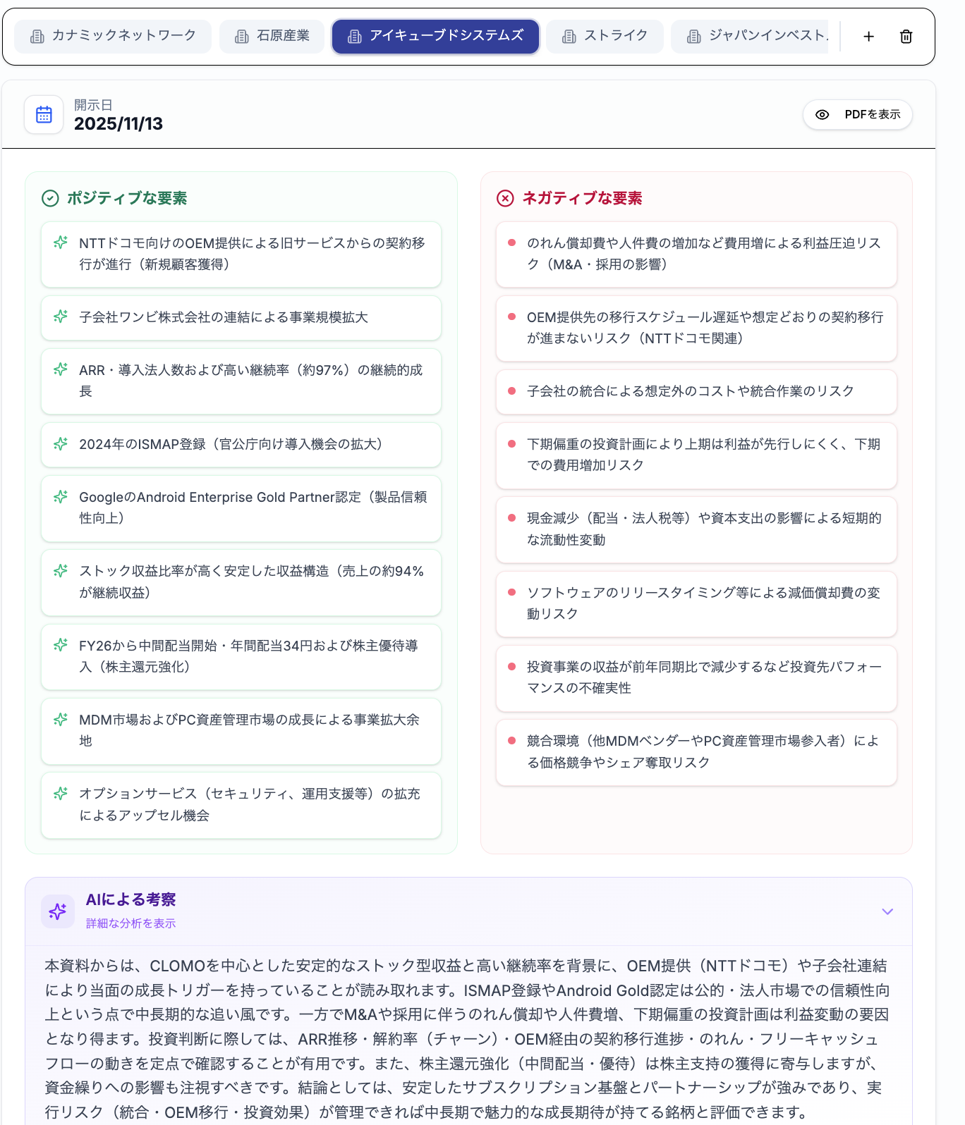 | 一次情報ベース | 決算短信・公式データを直接解析 |